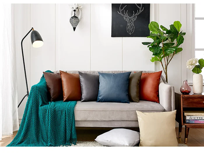 Imitation Leather Cushion Cover 45X45Cm Throw Pillows Decorative Pillow Home Decor Funda Cojin Sofa Living Room Car Home Decor
